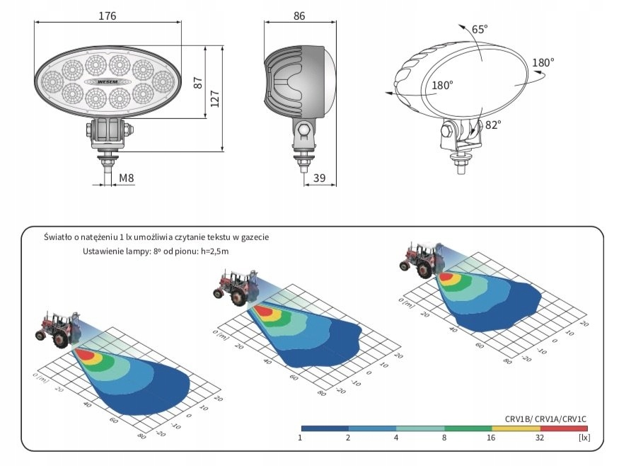 Використовуються для освітлення місць навколо транспортних засобів, тракторів, тихохідних машин та будь-яких місць, які можуть бути живлені вказаною напругою. відповідає директиві щодо електромагнітної сумісності 2004/108 /EC. Вони не випромінюють електромагнітних перешкод і стійкі до них. Вони вимагають живлення з відповідною поляризацією. Місця установки: окремо стоять на елементах кузова. Вони можуть бути встановлені в будь-якому положенні (стоячи, підвішені, збоку).