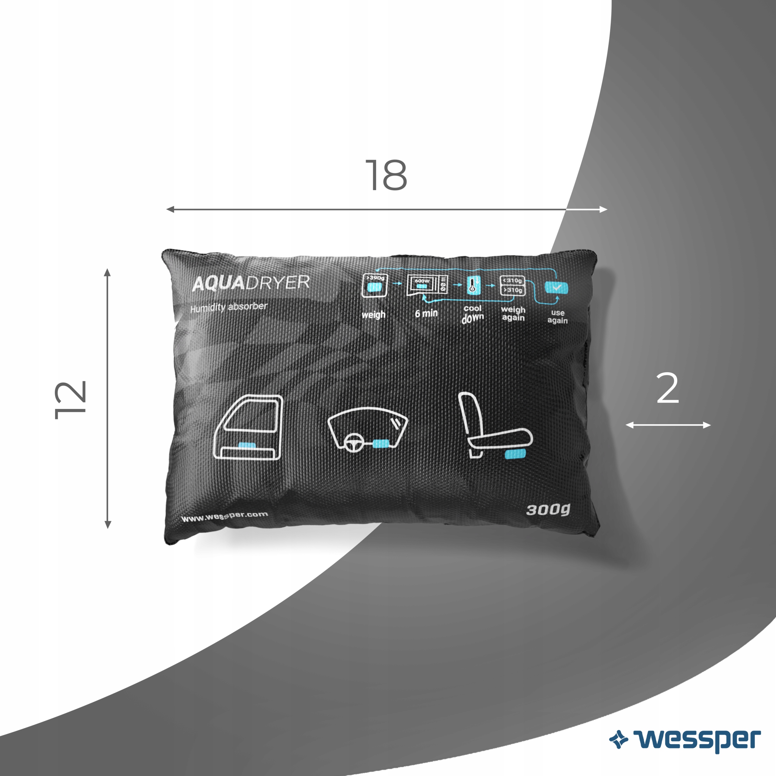 Автомобільний поглинач вологи Wessper AquaDryer гарантує швидке видалення вологи з автомобіля, невеликих підсобних приміщень або вологих предметів.