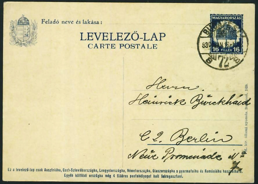 Węgry Cp - 16 filler 1930 r / Budapest - Berlin