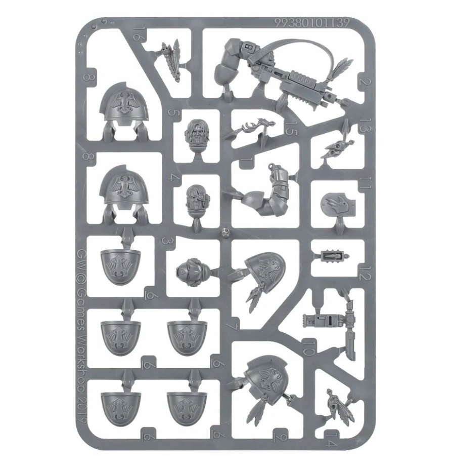 - 1 наплічник силової броні Raven Guard MK X (призначений для персонажів або сержантів із загонів Hellblasters/Intercessors)