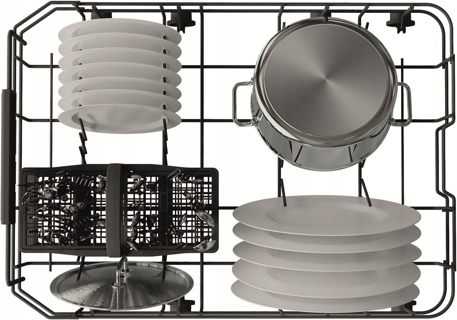 Ідеальне управління простором. Збільшити, зменшити або модифікувати простір всередині посудомийної машини, як вам подобається, завдяки модульним кошичам та складеним елементам.