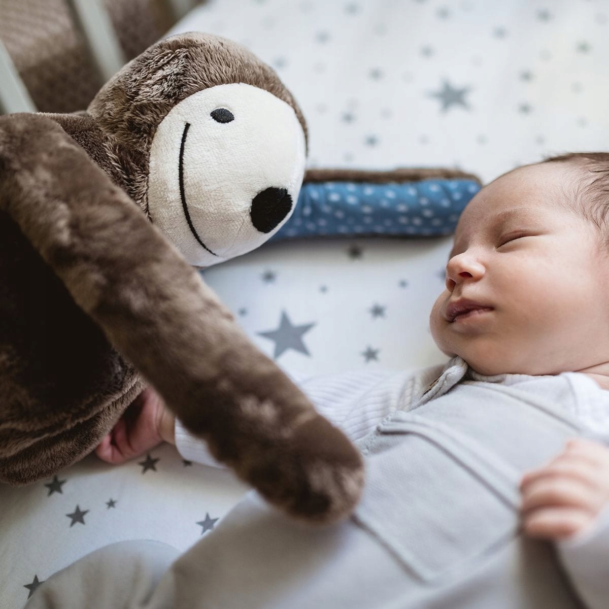 Він полегшує засинання, випромінюючи приємний рожевий шум, який сподобається кожній дитині. Завдяки магнітам, які надійно розміщені в лапах лінивця, його можна зручно прикріпити до рами ліжка чи коляски.