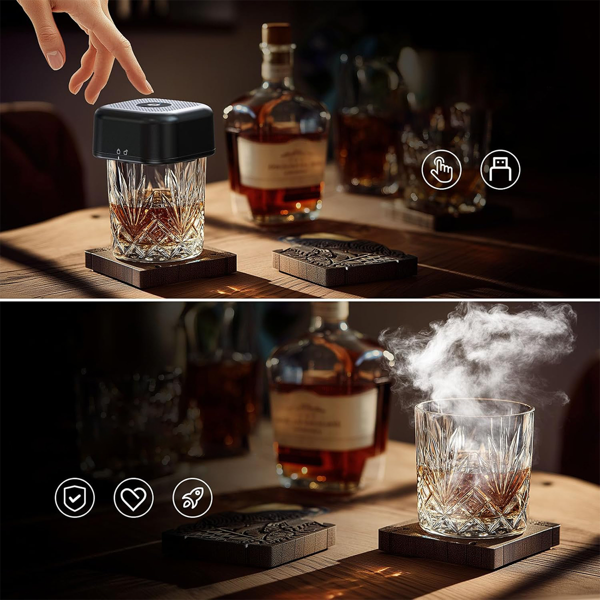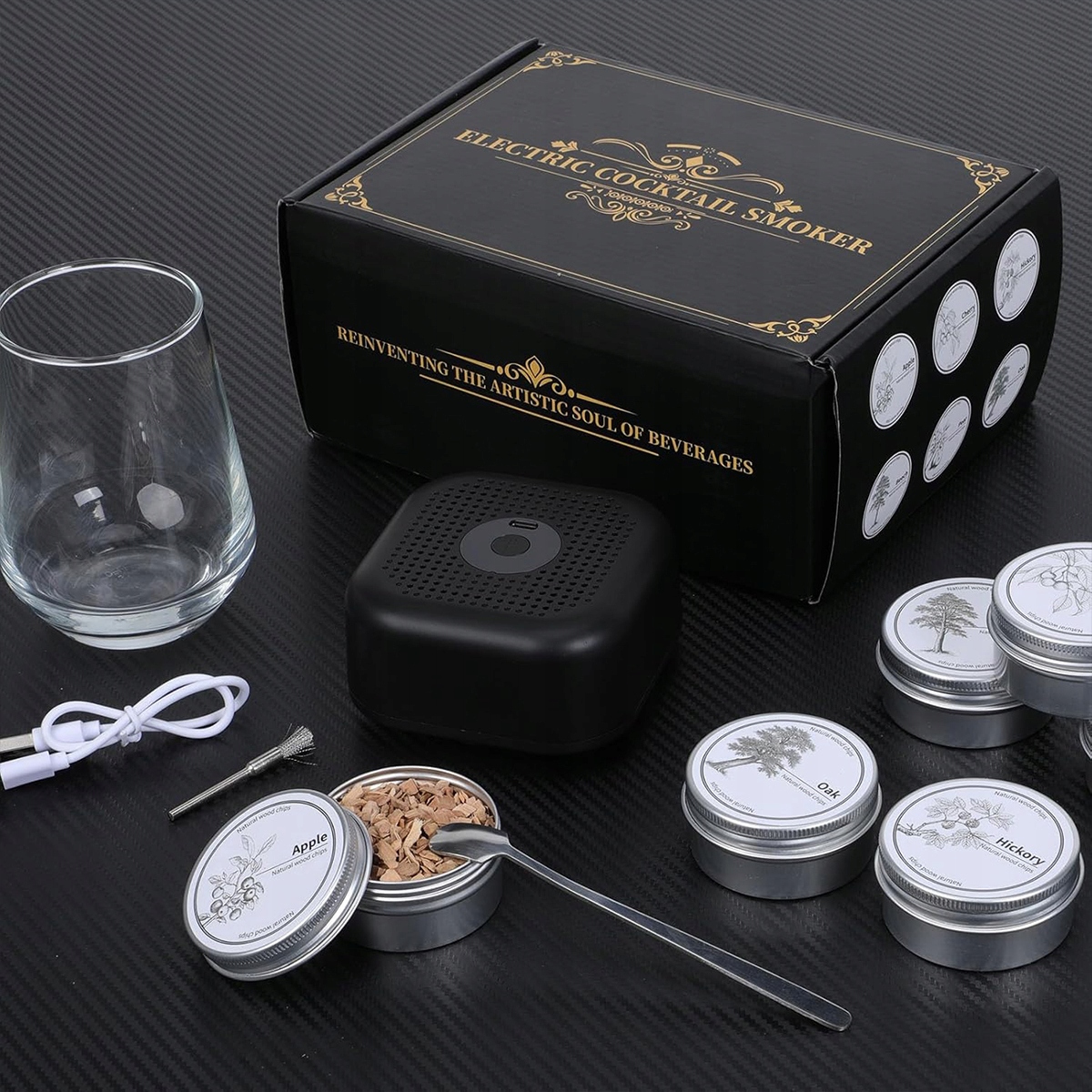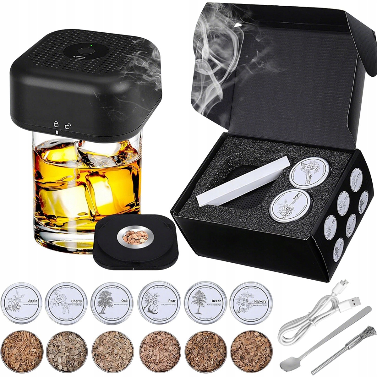 Пропонує унікальну смакову подорож. Подібно до того, як виробник коктейлів готує різноманітні напої, ви можете налаштувати димний смак свого віскі, додавши різні деревні стружки, такі як яблука, вишня та дуб. Це збагачує смакові відчуття, додаючи глибини та привабливості. Ідеально підходить для любителів віскі, які шукають щось нове.