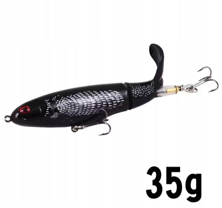 Дуже простий у використанні, не потребує керівництва, просто закидайте та діставайте з постійною швидкістю. Обертовий хвіст створює багато шуму на поверхні води.