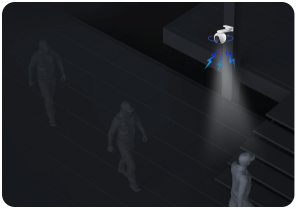 Після виявлення зловмисника він запускає гучну звукову сигналізацію та два миготливі вогні, щоб відлякувати зловмисників.