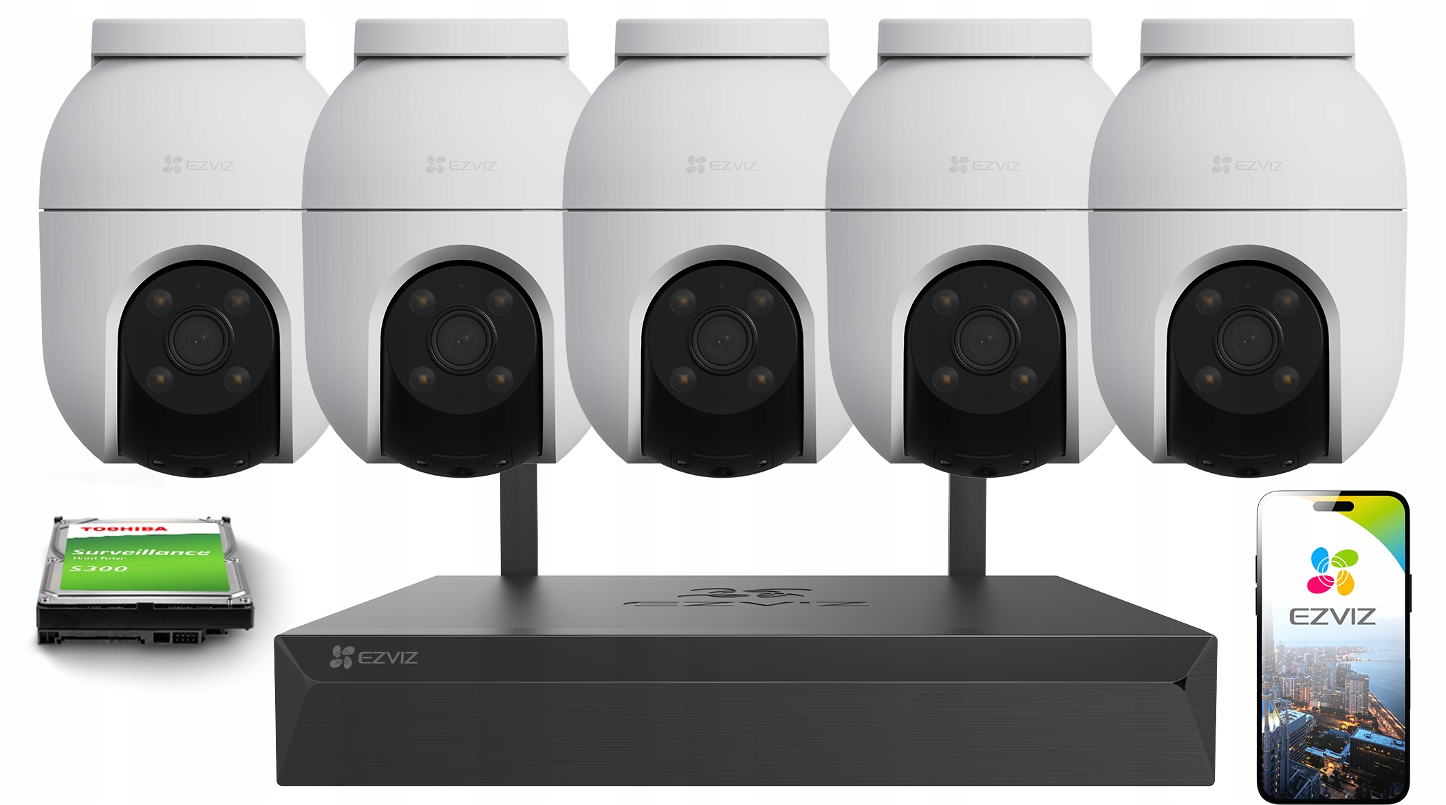 Wi -Fi Ezviz 5X C8C 3K 5MP MONITORING. C8C Wi-Fi 3K з роздільною здатністю 5 MPX, X5S-8 Вт та Toshiba S300 1TB Drive, що створює повну систему зовнішнього захисту. Камери C8C, оснащені вдосконаленими функціями, такими як роздільна здатність 3K (5 Мп), обертання 352 ° та опір IP65, забезпечують широке покриття площі без "мертвих точок" і стійкі до складних погодних умов. Завдяки побудованому AI, камери підтримують виявлення людей та транспортних засобів, що дозволяє інтелектуальним сповіщенням у випадку виявлення трафіку. Рекордер X5S-8 Вт дозволяє керувати записами та переглядати історію відео, а диск Toshiba 1TB забезпечує достатнє місце для довгострокового зберігання даних. 4