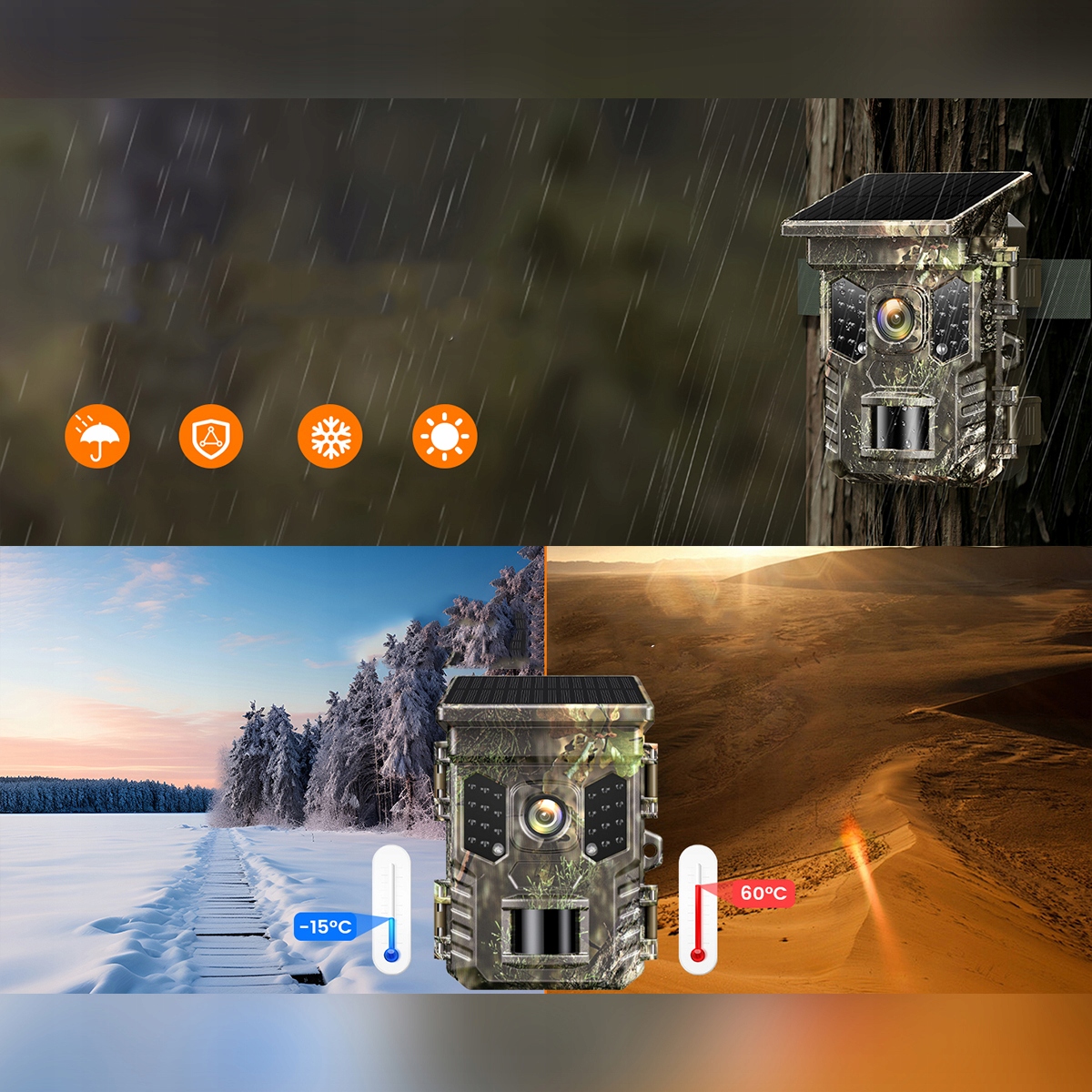 ✅ Час спрацьовування 0,2 с та серії фотографій: Ця камера для фотографування диких тварин з нічним рухом поєднує час визволення 0,2 с, здатність робити 5 фотографій у безперервному режимі та кут виявлення піру 100 ° з 20 м, щоб ви могли захопити захоплюючі моменти. Сонячна камера для фотографій дикої природи була розроблена для швидкої дії та захоплюючих сцен. Ніяких затримок, тож ви не пропустите жодної хвилини.