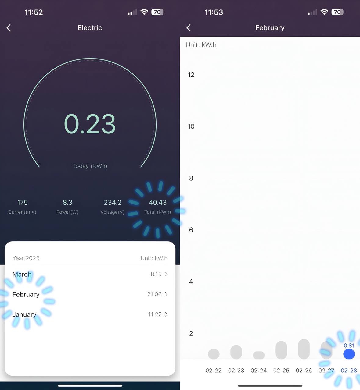 ✅ Простий у відображенні споживання енергії за допомогою пристрою, підключеного до інтелектуальної вилки в додатку.