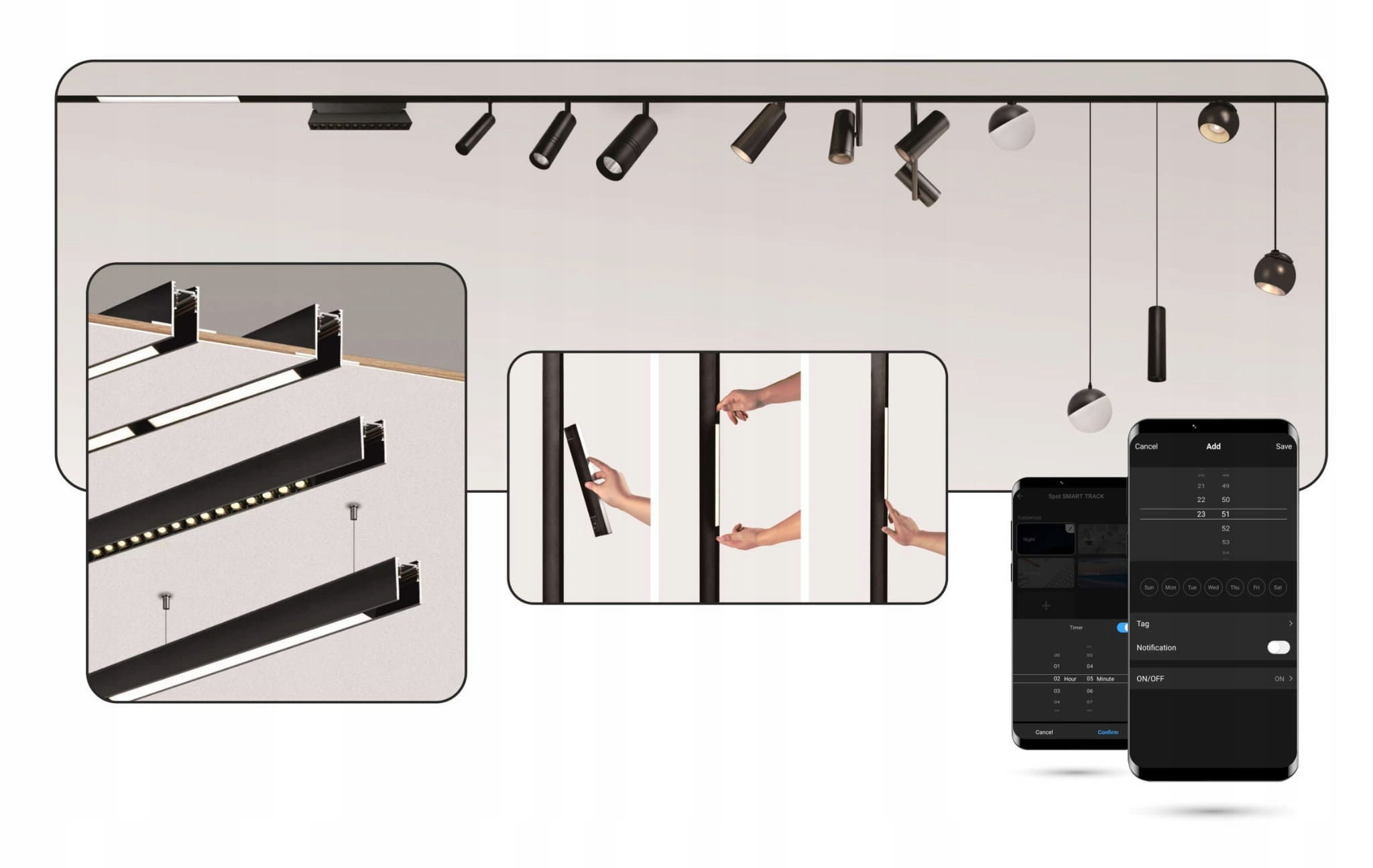 освітлення - один із елементів, що ділять наші інтер'єри з точки зору функціональності. Колір світла має великий вплив на нашу свердловину. Чим більше світло світла тепле, а світло приглушене, тим більше ми розслаблені та розслаблені. Світло, що падає в жовтий або навіть помаранчевий, дає ефект затишності та близькості. Однак, чим більше світла прохолодно і гостро - наша концентрація збільшується, і ми стаємо більш збудженими. Це сприяє роботі та навчанню, але це досить втомлює для наших очей та мозку. Завдяки інтелектуальній магнітних залізничних систем смарт -доріжки колір та інтенсивність світла легко змінюватимуться за допомогою смартфона.