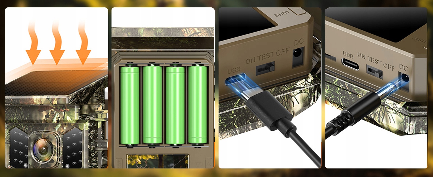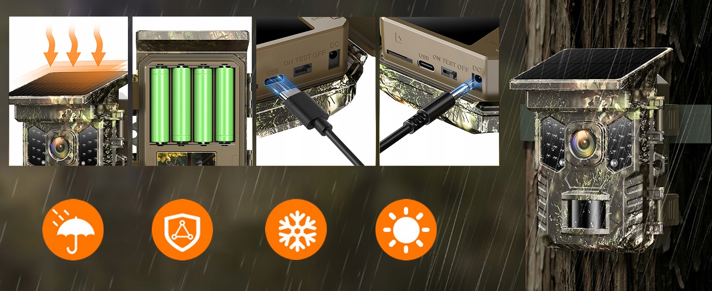 Сонячна подвійна потужність: Ця камера, що працює на сонячній енергії, для диких тварин із додатком для надсилання даних з мобільного телефону має вбудовану літій-іонну акумулятор потужністю 2600 мАг, яка працює від сонячної панелі. Це зменшує споживання акумуляторів АА та захищає навколишнє середовище. Додатковий запас живлення AA забезпечує друге джерело живлення для продовження часу акумулятора (акумулятори AA не включаються до набору).