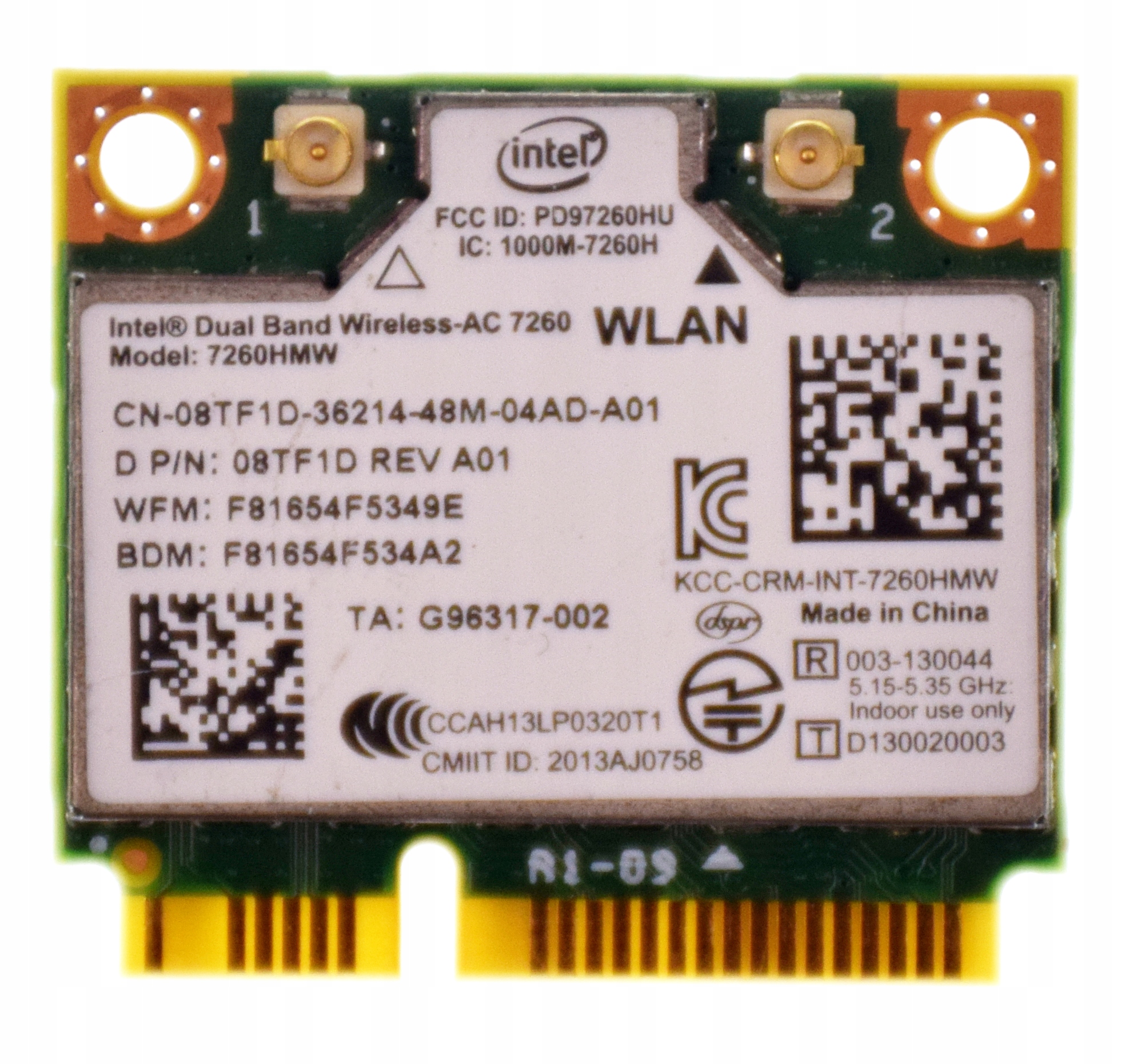 Оплачивая «Wi-Fi Card WLAN Intel Dual-полос Wireless-AC 7260 08TF1D» данный товар из каталога «Модули Bluetooth» вы можете быть уверены, что после оформления заказа, доставки в Украину, вы получите именно то, что заказывали, в оговоренные сроки и европейского качества.