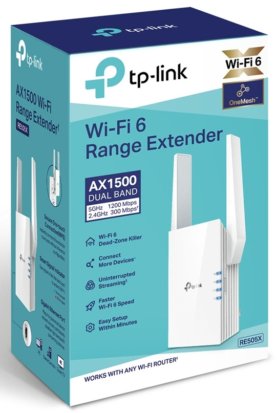 Модель TP-LINK RE505X розроблена для значного покращення якості бездротового з’єднання в житлових будинках і за їх межами. Це означає, що його технологічно просунутий дизайн гарантує дуже хороші параметри з точки зору пропускної здатності. Підсилювач TP-LINK RE505X працює в двох діапазонах частот: 2,4 і 5 ГГц, забезпечуючи загальну швидкість з'єднання до 1,5 Гбіт/с! Завдяки цьому перегляд фільмів через Інтернет, трансляція або гра в онлайн-ігри будуть абсолютно комфортними.