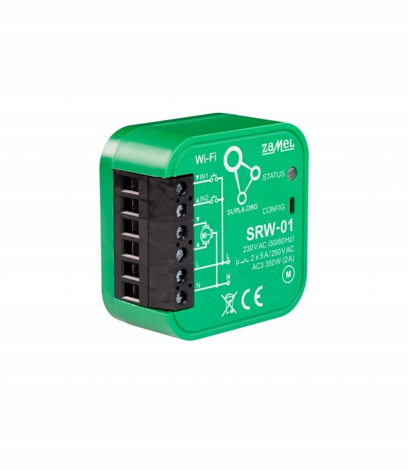 Сліпий контролер SRW-01 дозволяє керувати жалюзі для роликів за допомогою кнопок затвора роликів. Завдяки вбудованому приймачеві Wi-Fi, пристрій підключається до хмари і дозволяє дистанційно керувати жалюзі. Користувач може перевірити положення сліпих. Також можна закрити або відкрити його. Завдяки графікам, заощадженим у хмарі, можна автоматично керувати роликовими сліпими у визначений час у вибраний день тижня.