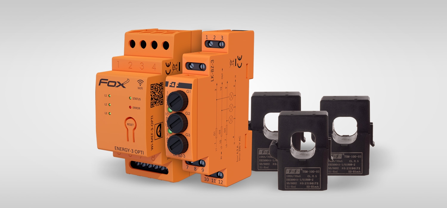 ENERGY 3-OPTI-100 - бездротовий (працює в мережі Wi-Fi) лічильник споживання електроенергії. Він фіксує споживання електроенергії та контролює важливі параметри мережі - напруга, струм, потужність, енергоспоживання. Доступ до даних можливий безпосередньо з програми або через веб-браузер. Зв’язок відбувається без проводів через Wi-Fi та хмару F&F.