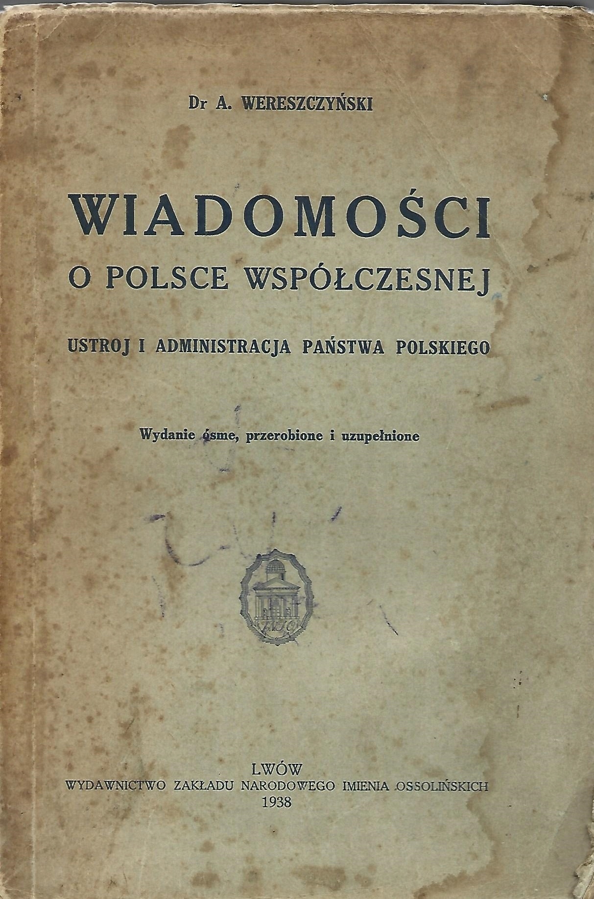 WIADOMOŚCI O POLSCE WSPÓŁCZESNEJ - DR. A. WERESZCZYŃSKI - LWÓW 1938