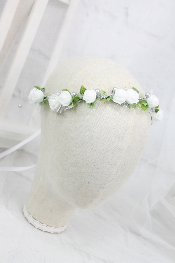 Wianek komunijny stroik delikatny perełki SREBRNY