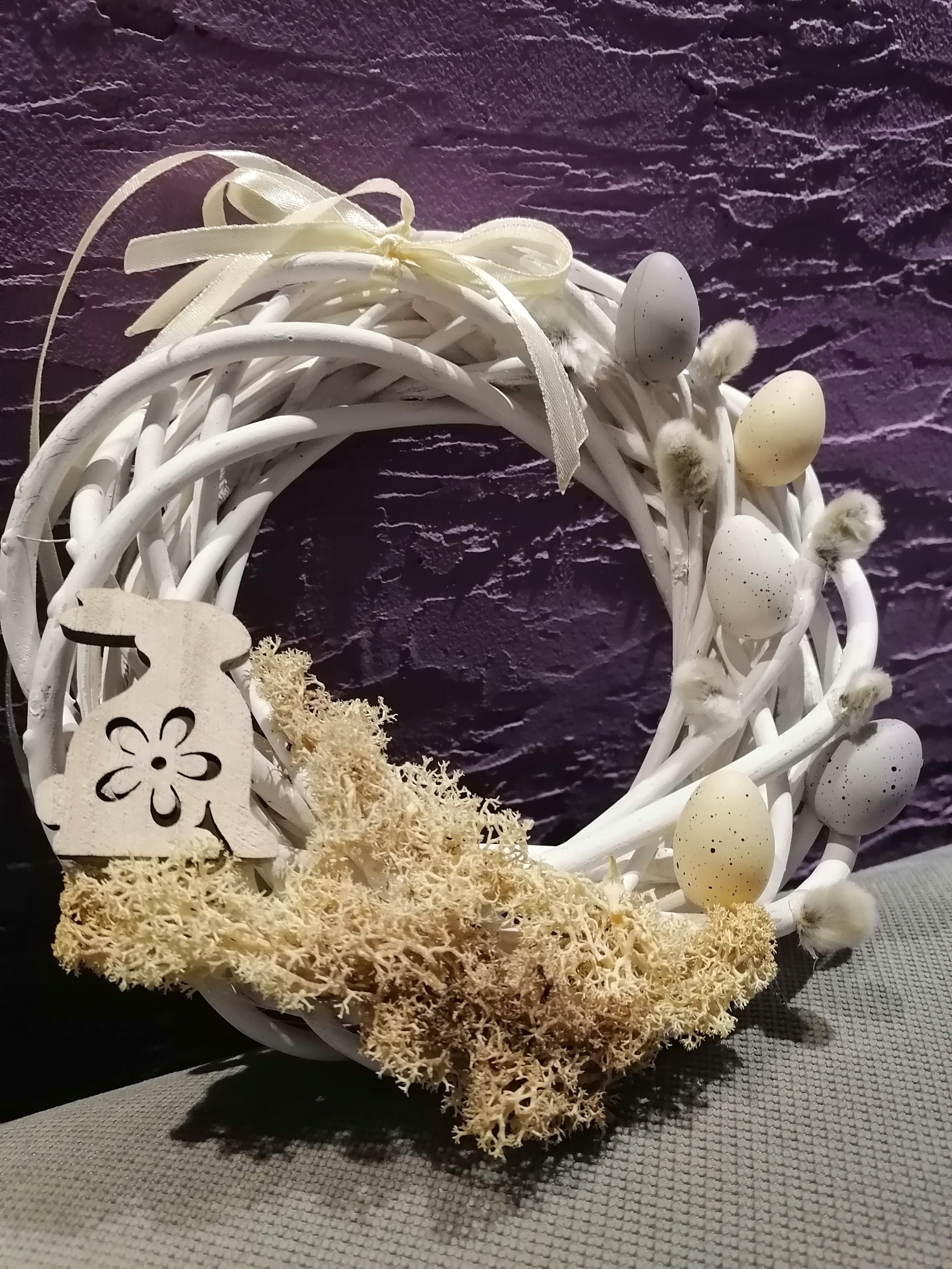 Wianek WIELKANOCNY biel szary BAZIE mech chrobotek