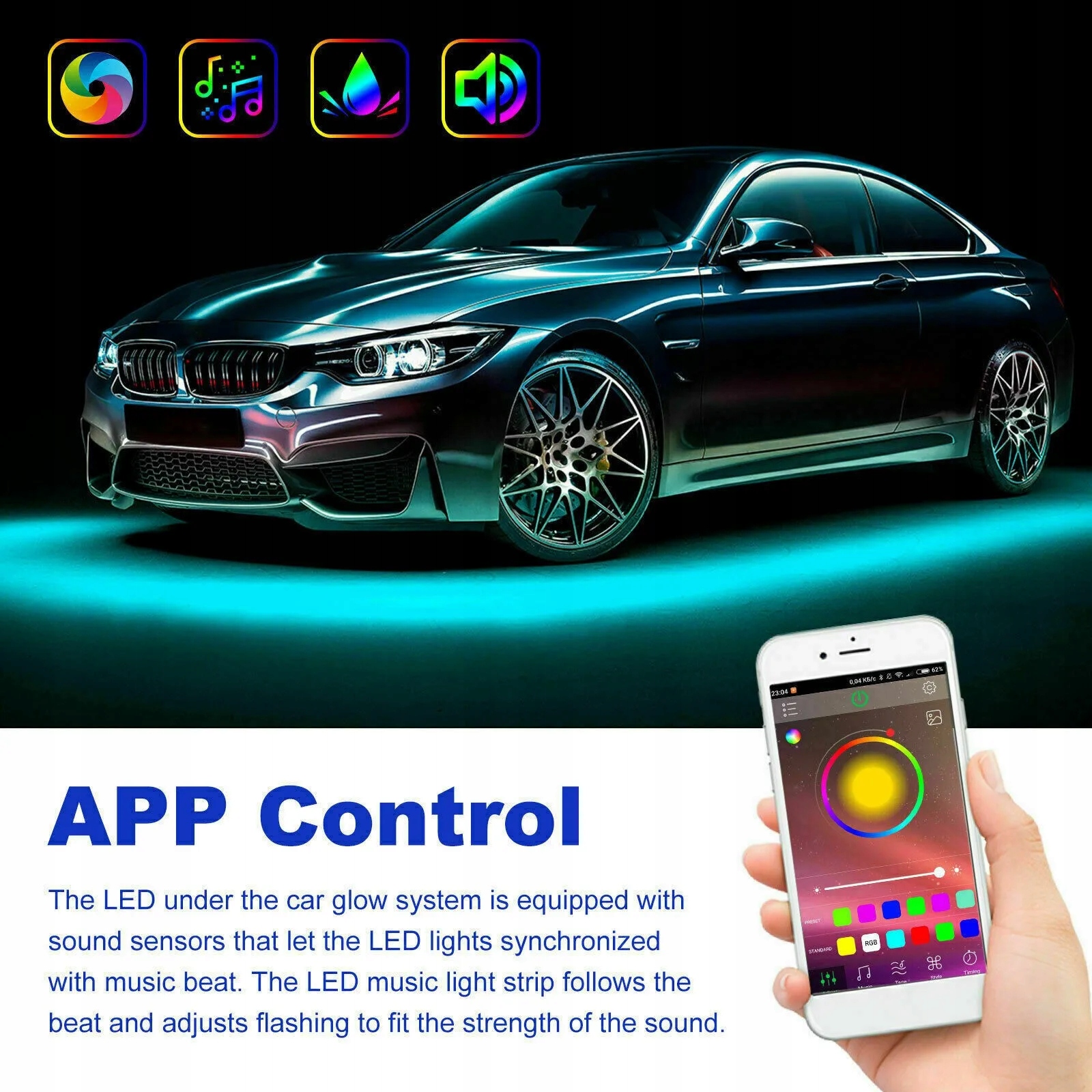 ✅З бездротове дистанційне керування та голосове керування перемикачем, кілька режимів миготіння (однокольоровий постійний світло, триколірний градієнт, семиколірний градієнт, триколірний спалах спалах, кольоровий спалах, 4 голосові режими).