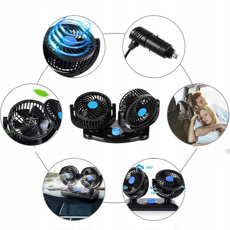 Вентилятор на 12 В оснащено подвійними головками, які можна вручну повертати на 360 градусів. Ви можете вільно регулювати кут відповідно до ваших вимог.