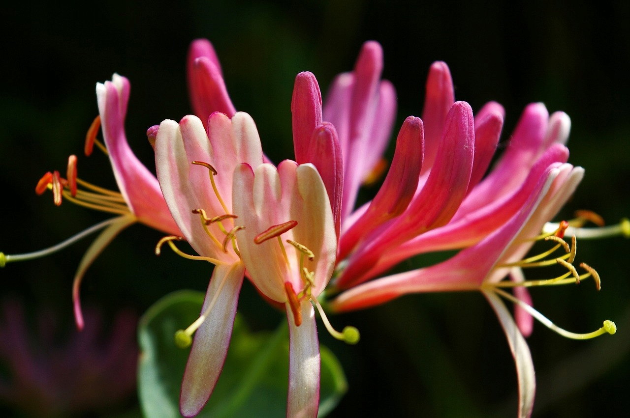 Напіввічнозелена ліана висотою до 5 метрів. Дуже гарне листя з жовтими жилками. Квітки з сильним запахом, червоні та білі, що змінюються жовтими. Цвіте з травня до пізньої осені. Чудова рослина для пергол, укриття сіток, огорож, вирощування на старих деревах. В упаковці 5 насінин.