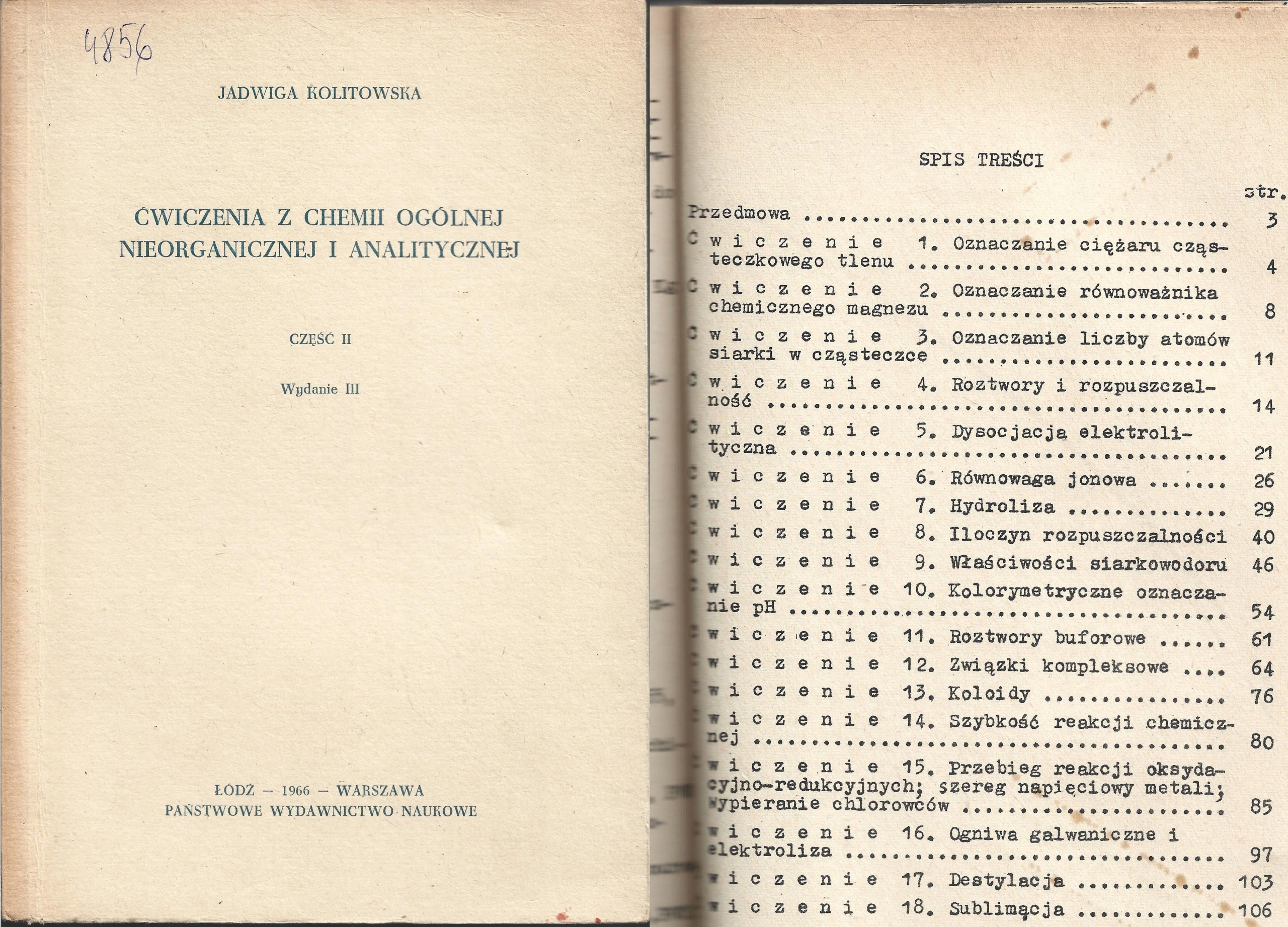 ĆWICZENIA Z CHEMII OGÓLNEJ NIEORGANICZNEJ I ANALITYCZNEJ część 2 Kolitowska