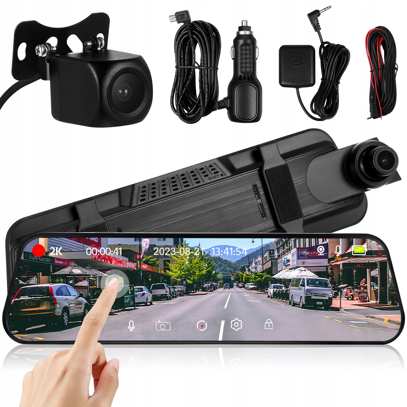 ПОДВІЙНИЙ 10-ДЮЙМОВИЙ ЗАПИС (ПЕРЕДНЯ 2K + ЗАДНЯ 1080P + WIFI) + ВІДСТЕЖЕННЯ GPS