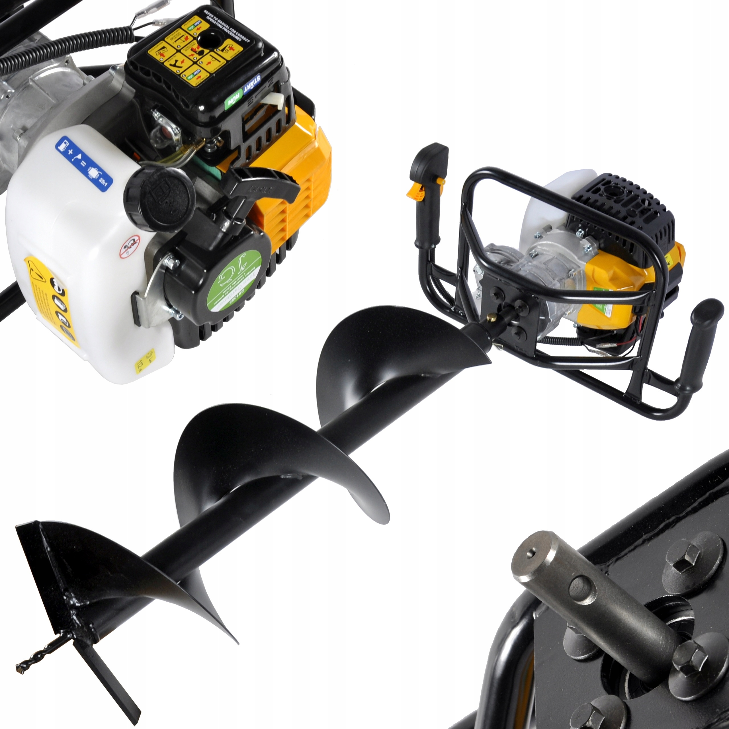 Завдяки потужному двотактному двигуну об’ємом 49,8 см³ свердління відбувається швидко та плавно, а також системі, яка вимикає двигун у разі втрати контролю над пристроєм. забезпечує безпечну роботу.