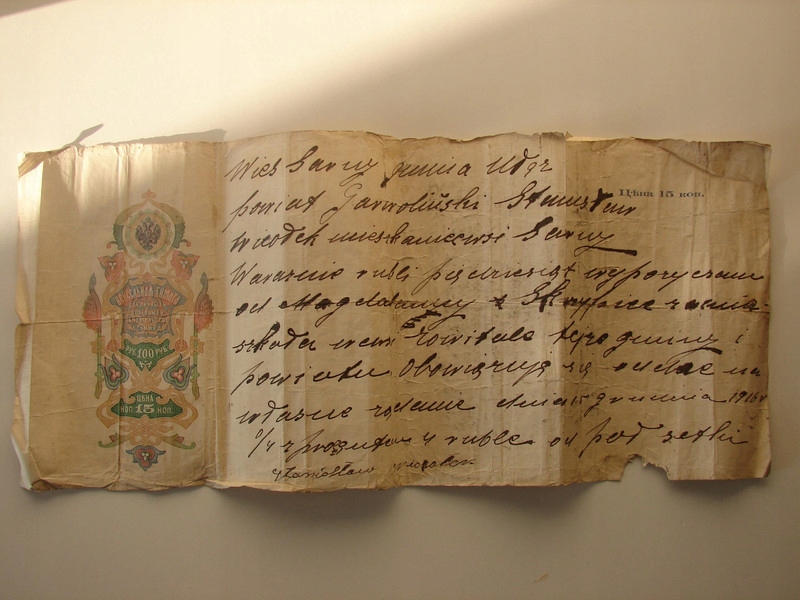 Wieś Sarny/ Strzyżowice gm. Ułąż - stary dokument z 1916 r / 4 RUBLE