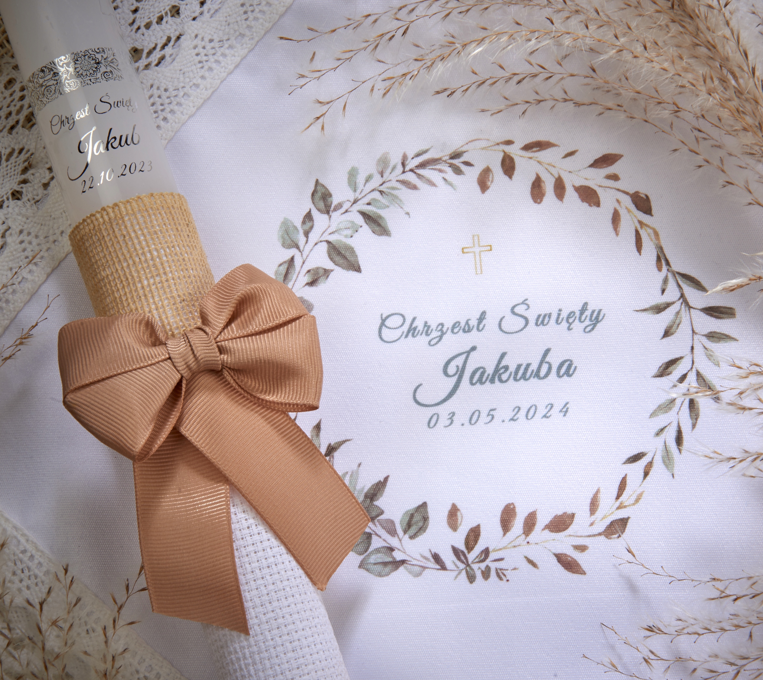 ŚWIECA BOHO I SZATKA DO CHRZTU GROMNICA NA CHRZEST PAMIĄTKA CHRZTU ŚWIĘTEGO