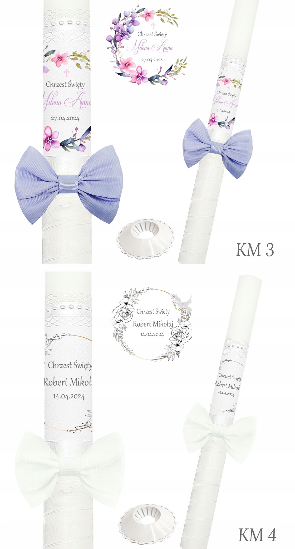 ŚWIECA DO CHRZTU Na CHRZEST GROMNICA z IMIENIEM dla chłopca dziewczynki