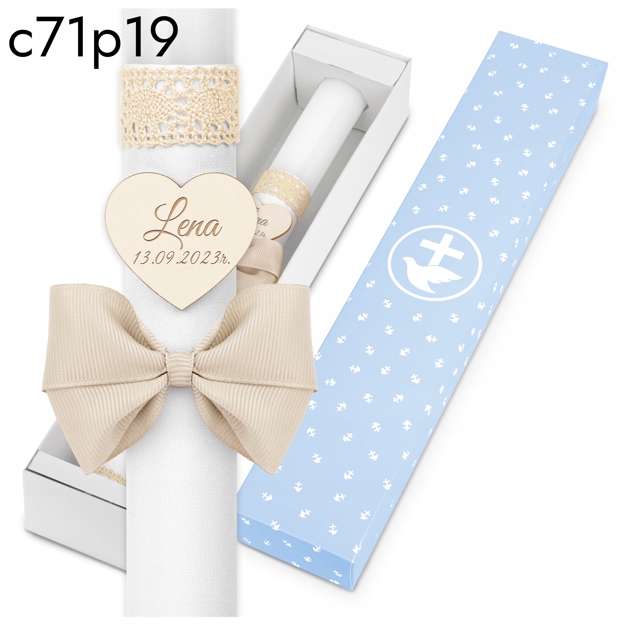 Świeca Komunia DLA CHŁOPCA Świeca Pierwsza Komunia Święta + pudełko