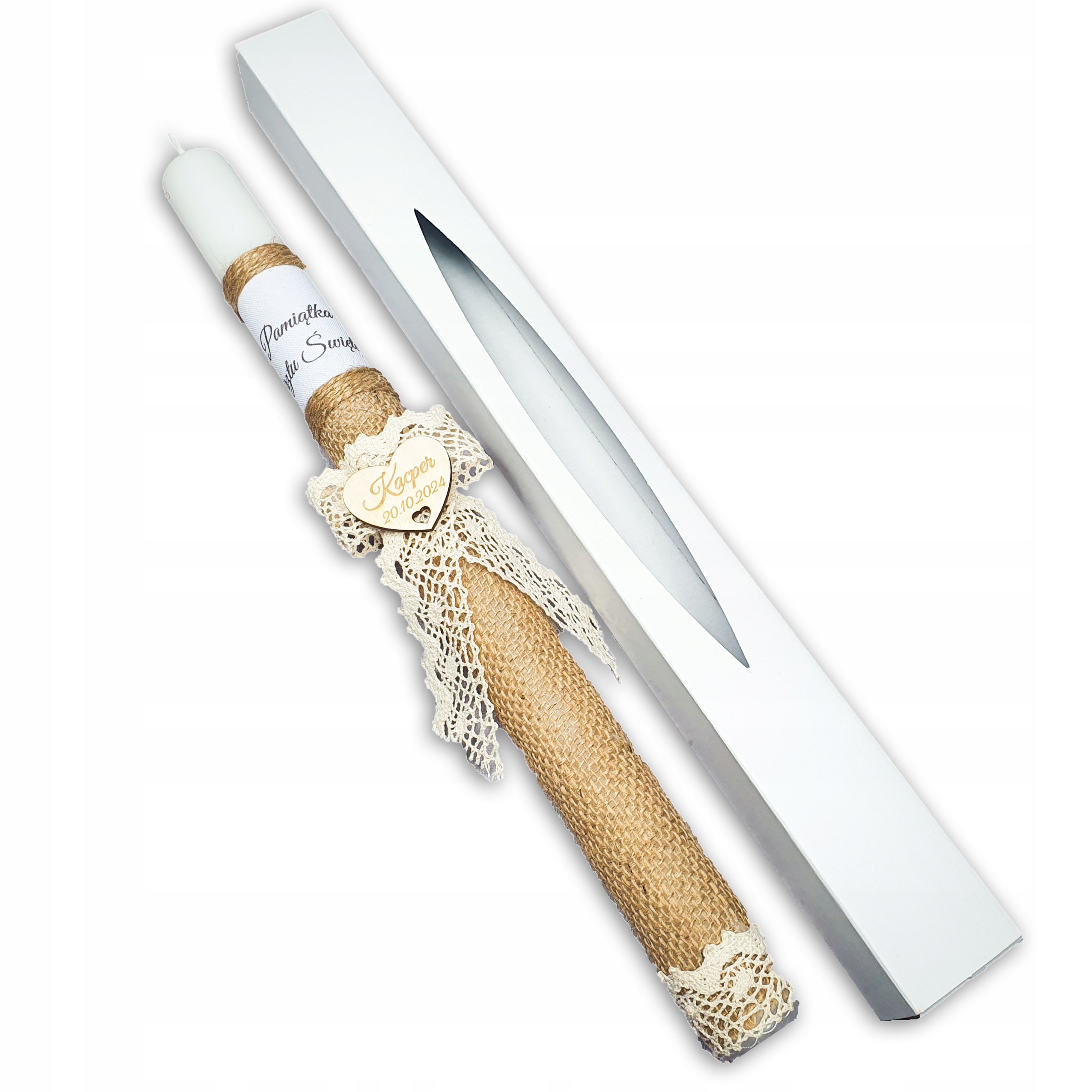 Елегантна та витончена свічка та скриньки для Святого Хрещення. Виріб високого класу, сердечко з лазерним гравіюванням