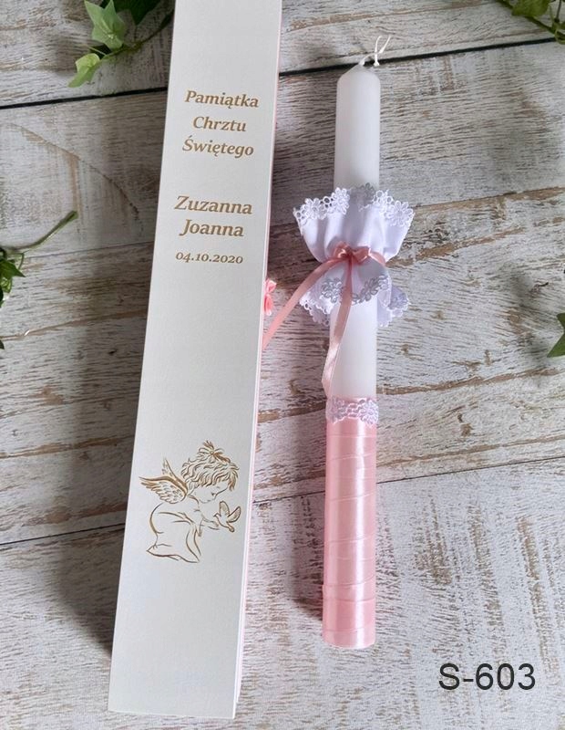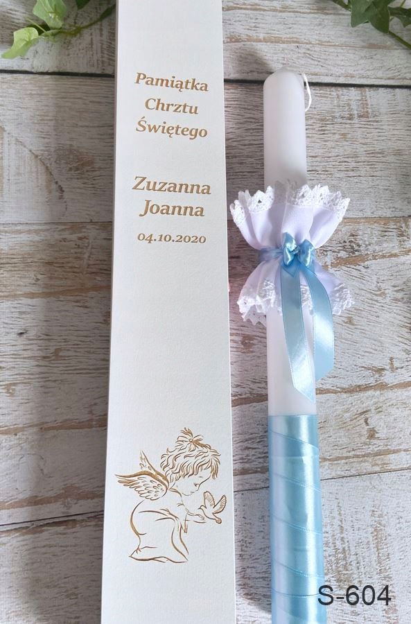 Świeca w pudełku białym grawer P86 pamiątka chrztu