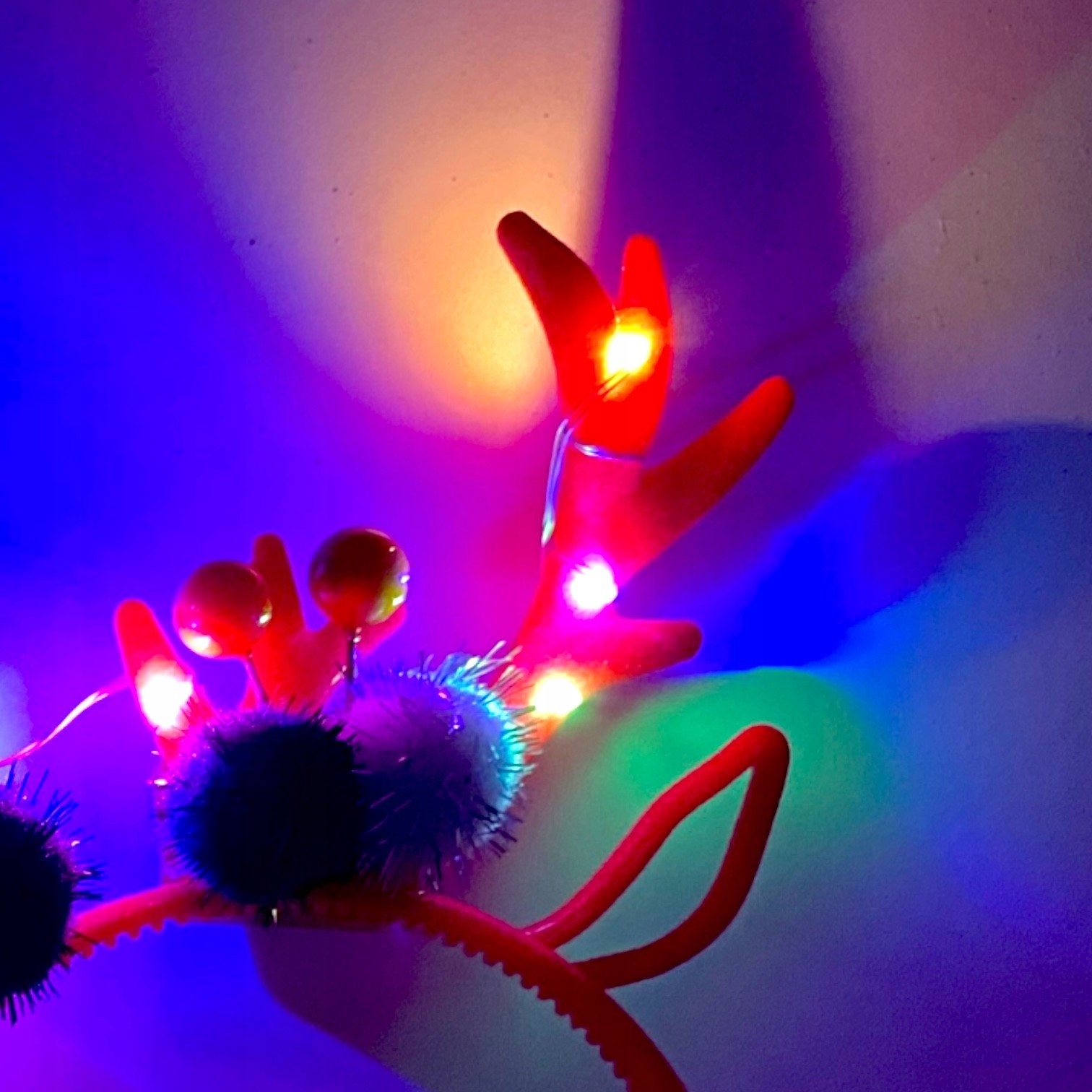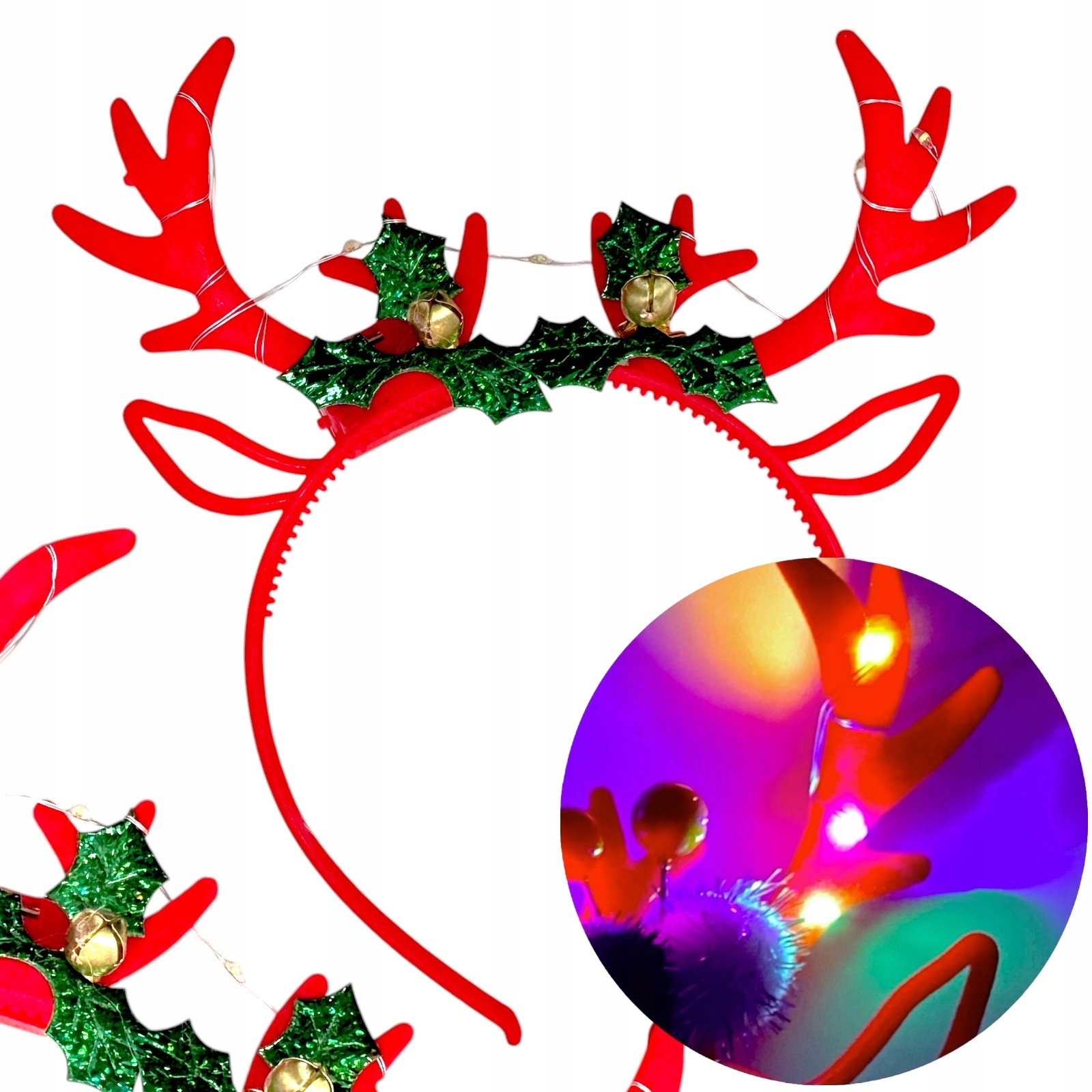 ŚWIECĄCA OPASKA RENIFEREK RENIFER przebranie ROGI Jelonek ŚWIATEŁKA LED