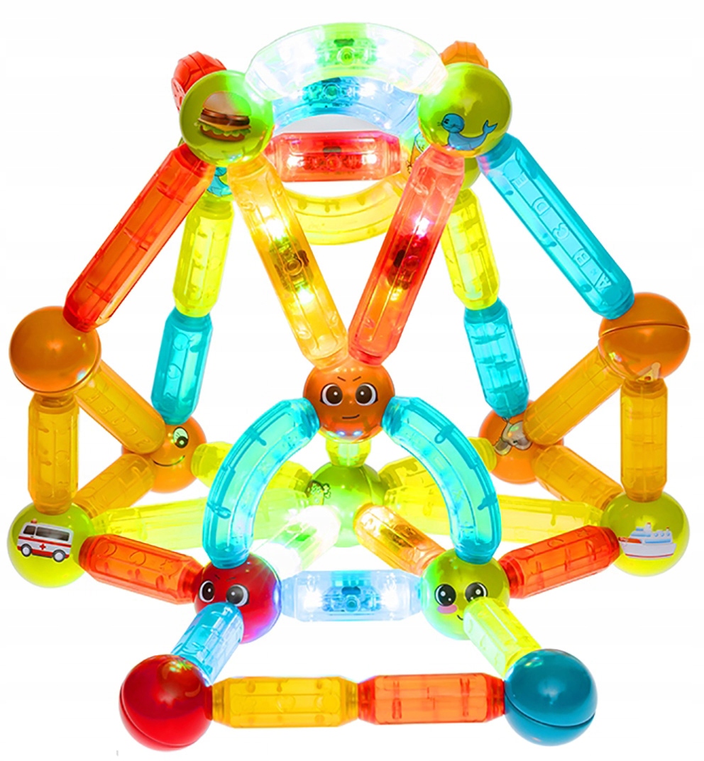 ŚWIECĄCE PATYCZKI MAGNETYCZNE KLOCKI MAGNETYCZNE Pałeczki Zestaw XL 52el.