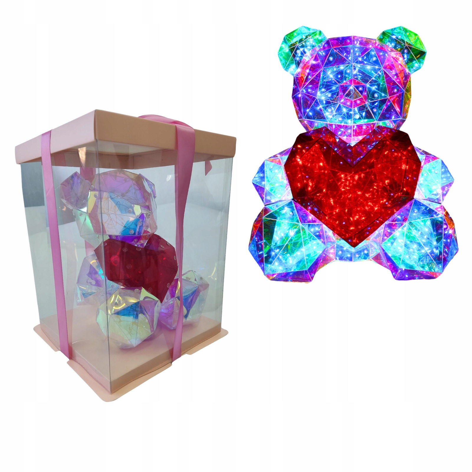 ŚWIECĄCY MIŚ LED PREZENT UPOMINEK TRANSPARENTNY + PUDEŁKO