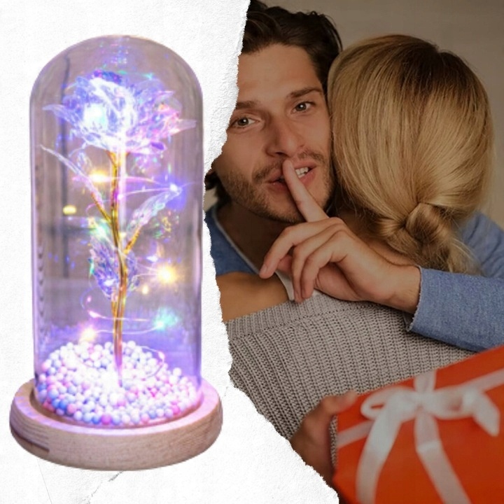 WIECZNA RÓŻA W SZKLE ŚWIECĄCA LED PREZENT PUDEŁKO ŚWIĘTA URODZINY GWIAZDKA