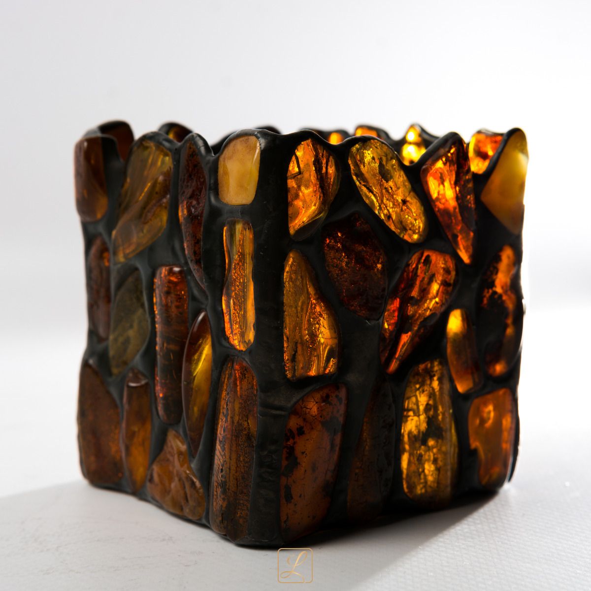 Świecznik T-Light kostka kwadratowa z bursztynu.