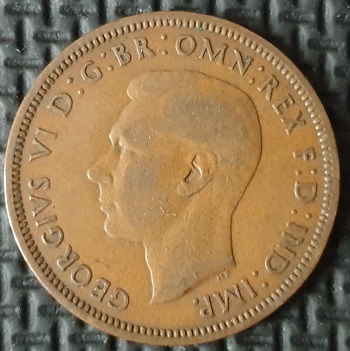 - Номінал: ПІВ ПЕННІ - ПОЛОВИНА 1/2 ПЕННІ *Георг VI з (написом) «IND:IMP» b >