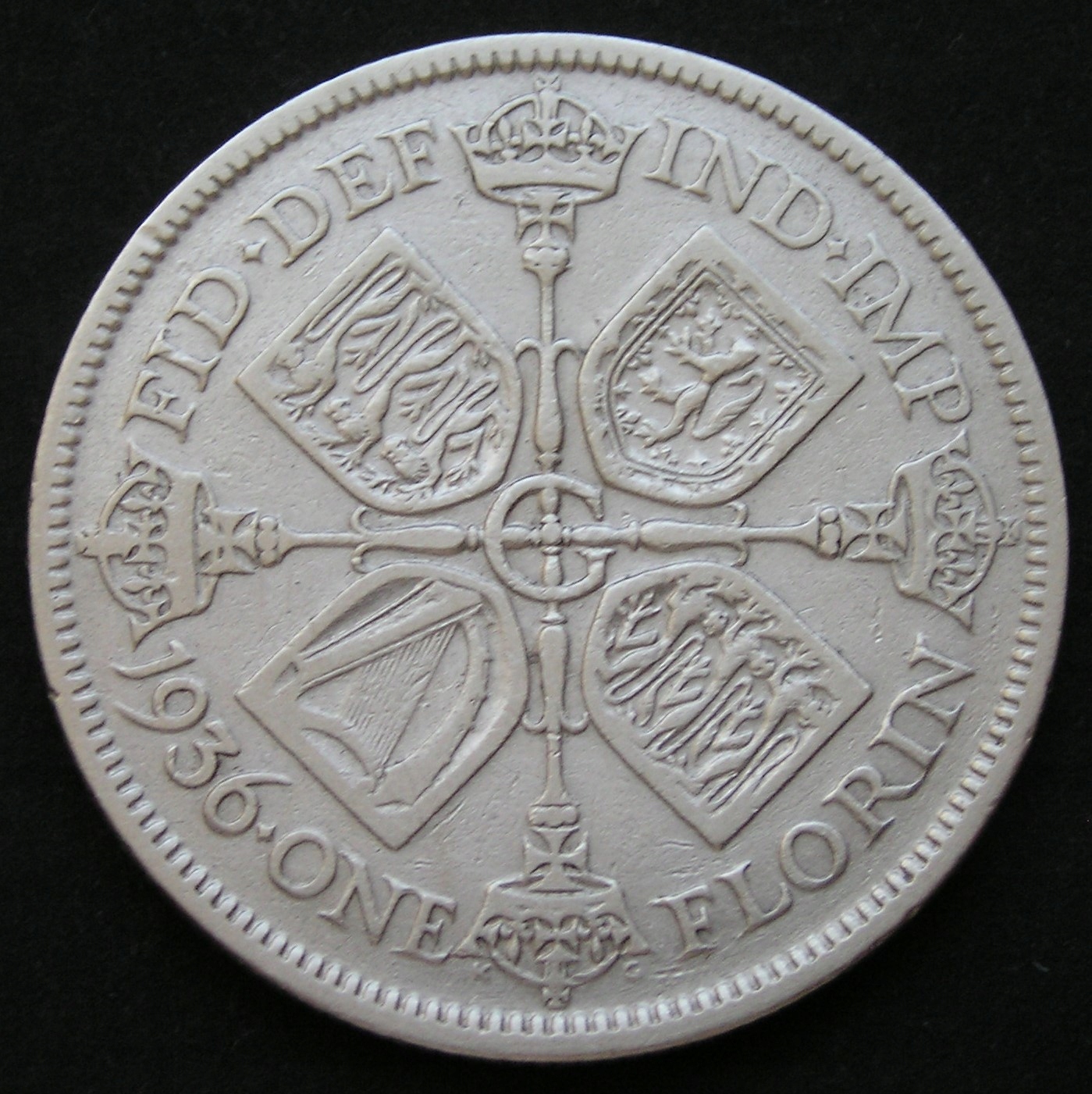 Wielka Brytania 1 florin 1936 - król Jerzy V - srebro