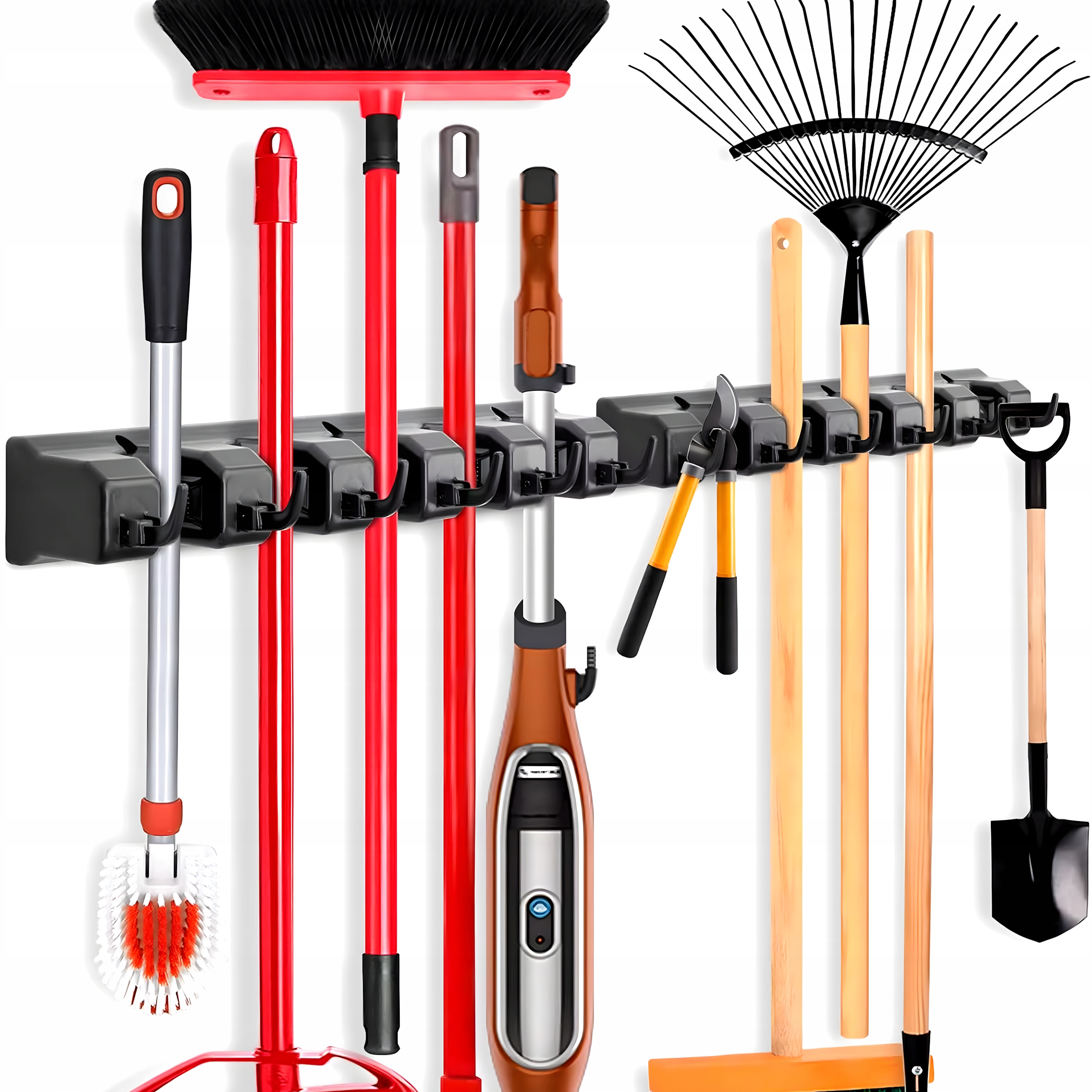 WIESZAK ŚCIENNY ORGANIZER NA MIOTŁY MOPY NARZĘDZIA OGRODOWE 5 MIEJSC 6 HAK