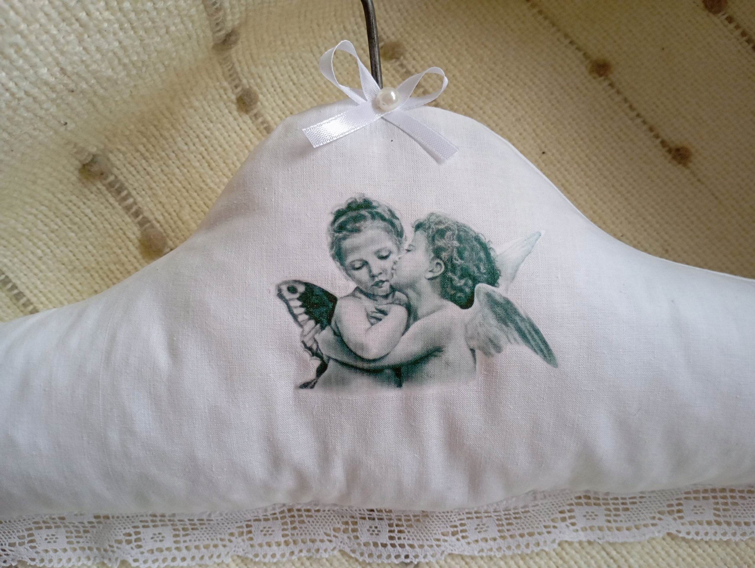 Вішалка, виготовлена з матеріалу, ретро -ангелів, пошарпаний шик