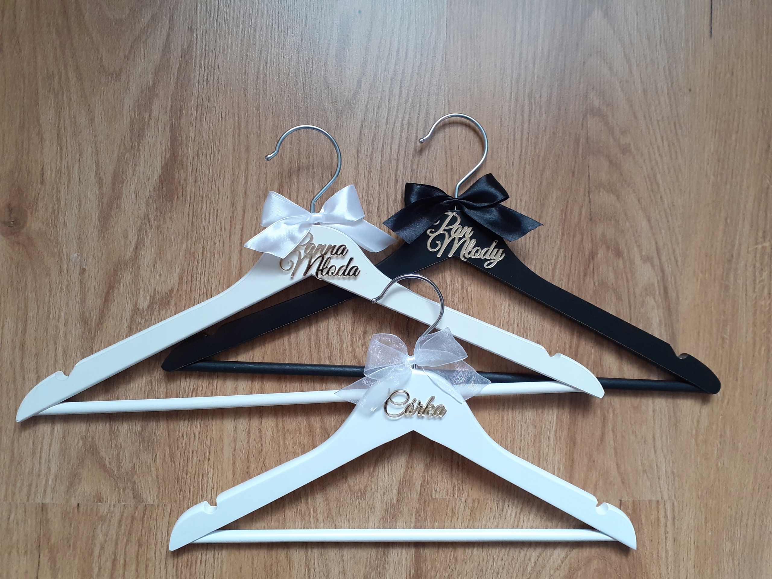 Wieszaki ślubne Panna Młoda Pan Młody Córka Syn komplet 3 szt