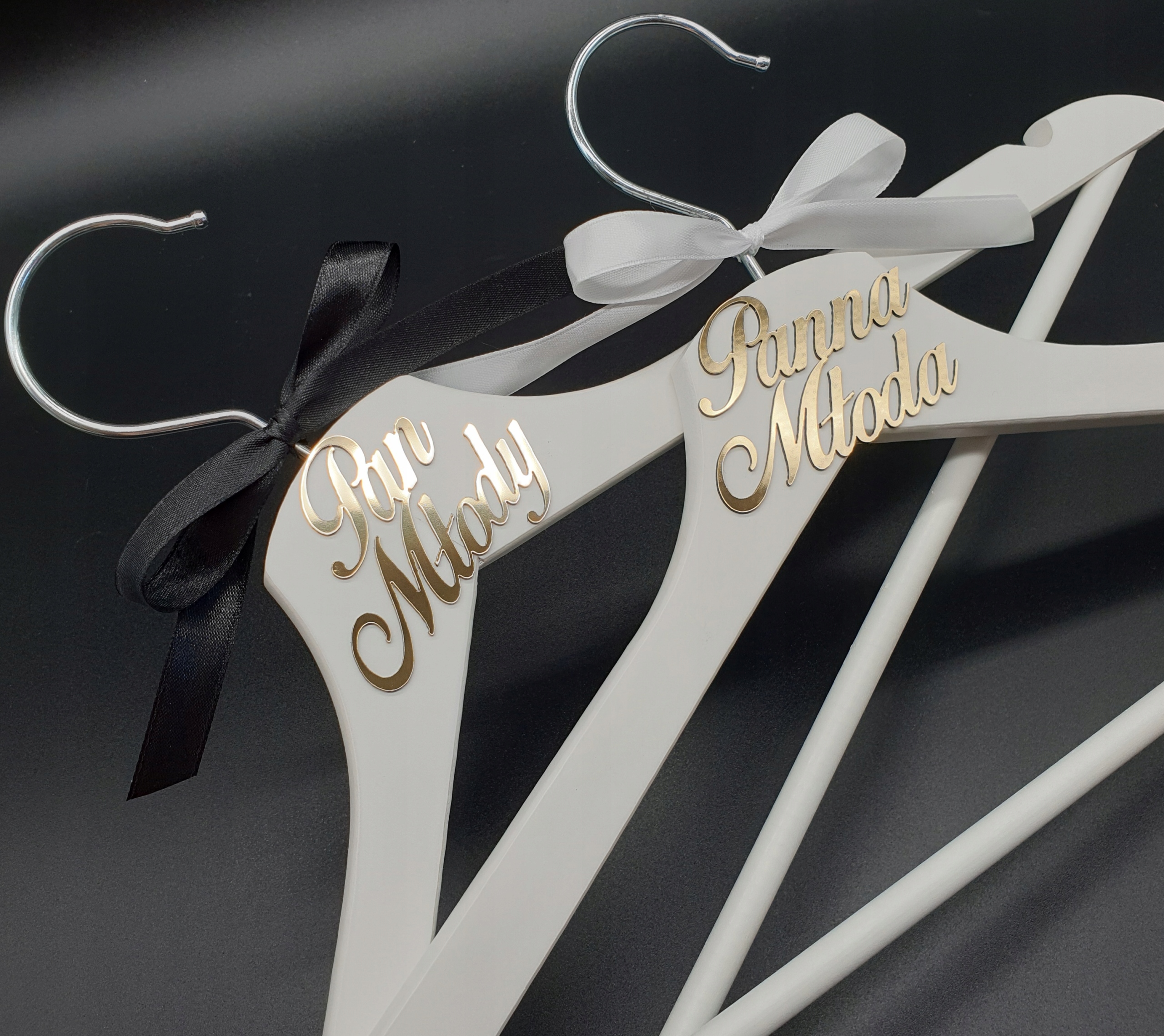 Wieszaki ślubne Panna Młoda Pan Młody złoty napis
