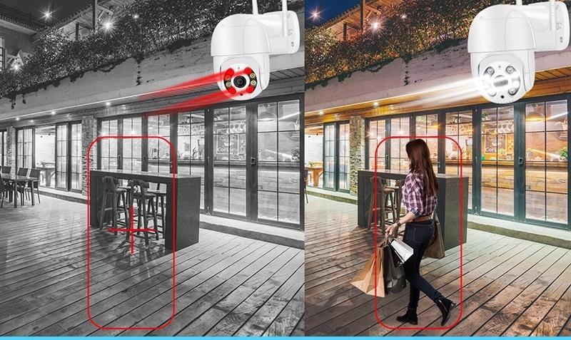 Камера має 4 ширококутні інфрачервоні лампи та 4 яскраво-червоні лампи, що робить її ідеальною не лише вдень, а й уночі.