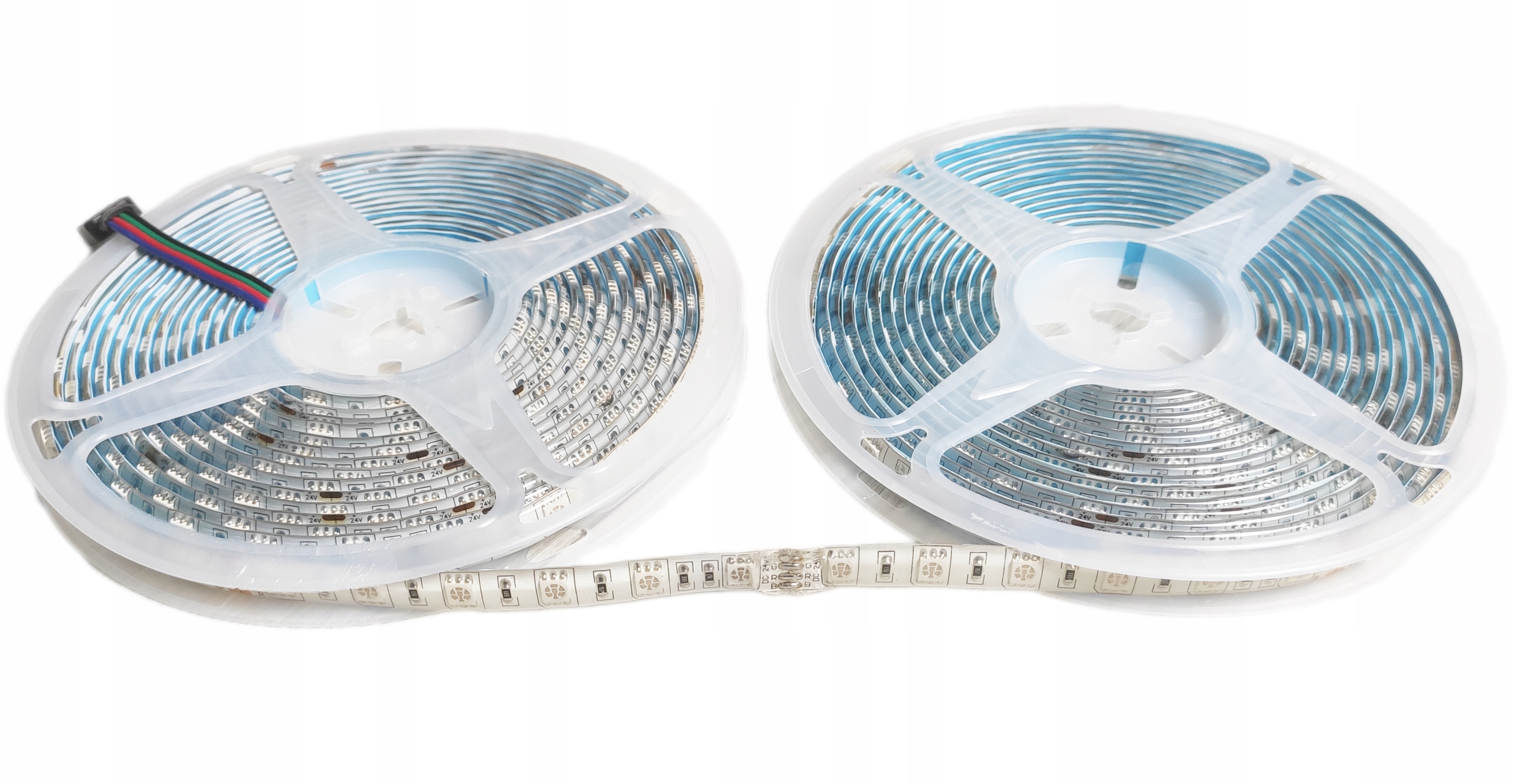 менші краплі напруги - 24 В напруга стрічки викликає меншу стійкість до передачі електроенергії і, таким чином, нижчі падіння напруги. Завдяки цьому можна підключити до 10 метрів стрічки в одному епізоді без помітних змін яскравості.