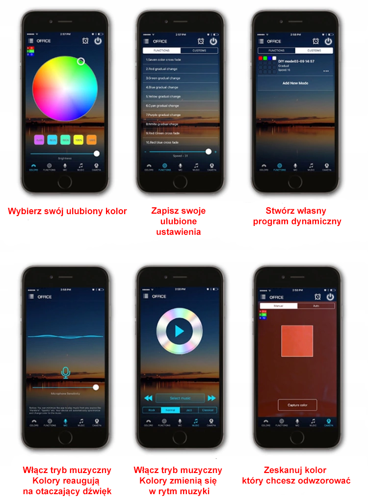 Бездротове керування освітленням у ритмі музики прямо з додаток. Стрічки також можуть спалахувати в ритмі музики за допомогою вбудованого мікрофона телефону.