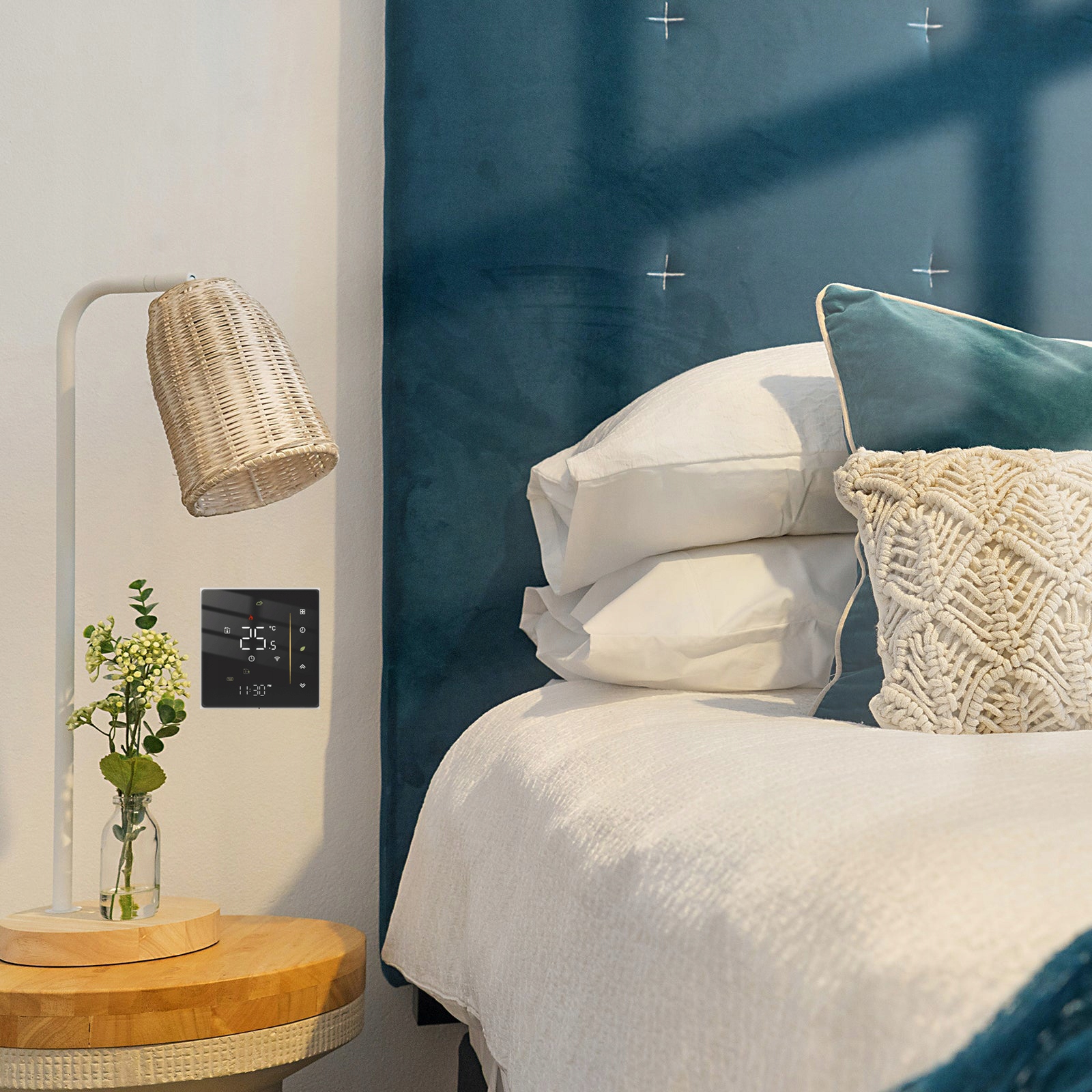 Дистанційне керування на пристрої: дистанційне керування температурою у вашому домі для додаткового вдосконаленого комфорту роботи з додатком Tuya/MOES без необхідності концентратора, пряме керування на смартфоні в точці роботи, створення кінцевих груп продуктів/ акції для досягнення застосування централізації для керування кількома терміналами для створення інтелекту.