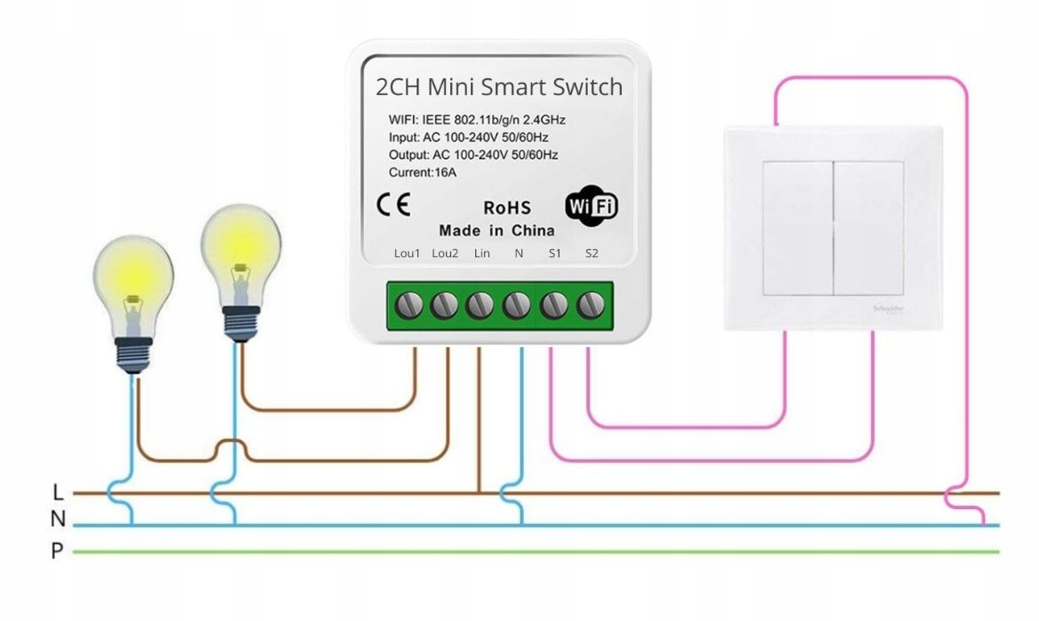 Модуль дистанційного керування для управління освітленням Wi -Fi, до живлення до 3680 Вт та 280 Вт світлодіодного світла . Це дозволить вам керувати світлом підключення до Wi -Fi або віддалено з будь -якого місця на Землі . Крім того, ви можете встановити графік, таймер або функції STOPWATCH, які заощадять на облікових записах, автоматично вимикаючи освітлення , а також інтелектуальні сцени , такі як вмикання на кілька вогнів одночасно або вимкнення світла через певний час. Компактний розмір 41x41x24 мм також дозволить вам встановити приховану банку (для зручного складання - ми рекомендуємо глибиною 60 мм).