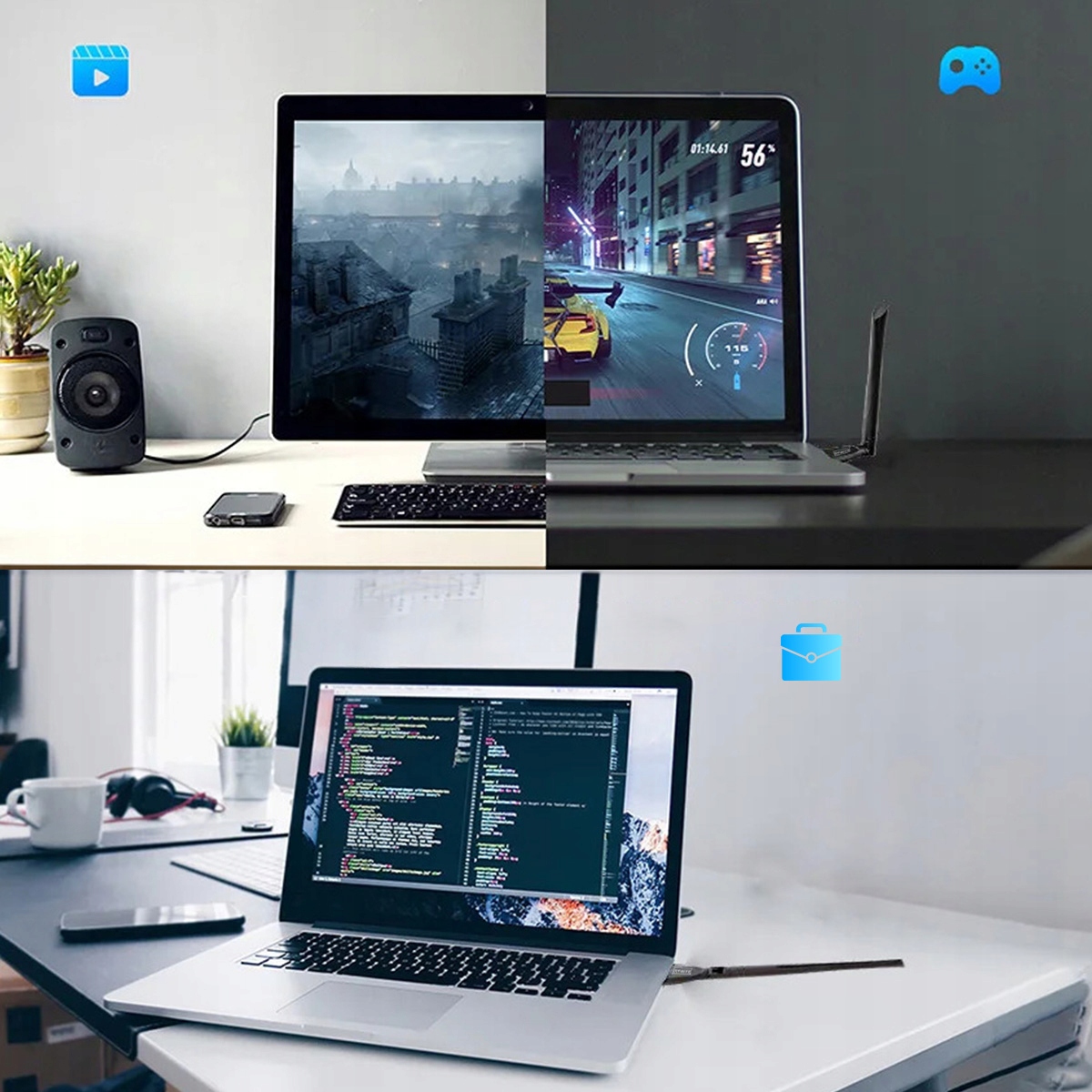 ✅ Подвійна частота ( 2,4 ГГц та 5,8 ГГц ) забезпечує оптимальний вибір смуги, пропонуючи кращу продуктивність та стабільність з'єднання.